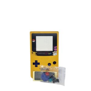 Zastępcza niebiesko żółta obudowa wraz z stykami baterii, plastikową szybką zabezpieczoną folią z samoprzylepną taśmą, przyciskami, śrubkami oraz naklejką na tył.